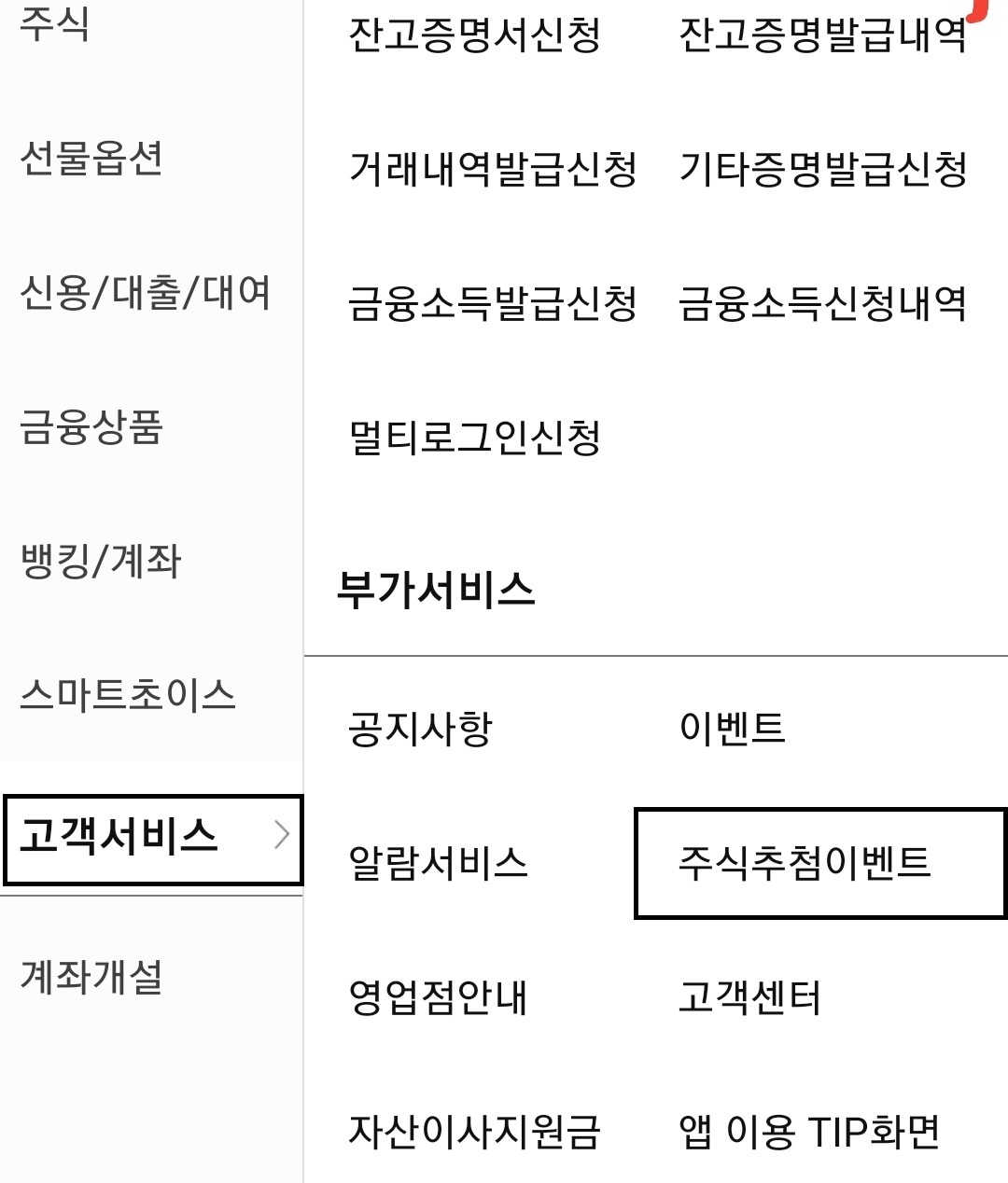 고객서비스 - 주식추첨이벤트에 가서 이벤트응모하고 바로 추첨을 진행하면 끝!