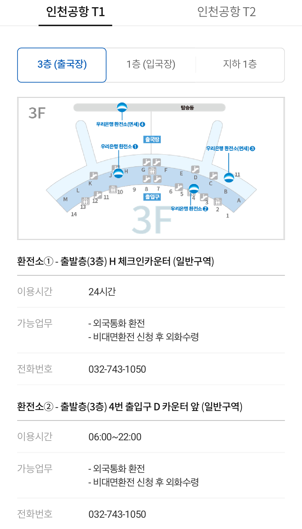 인천국제공항 제1여객터미널 우리은행 공항환전소