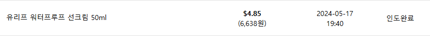 그래서 급하게 롯데인터넷면세점 3시간전샵에서 유리프 워터프루프 썬크림을 6,638원에 구매했다.