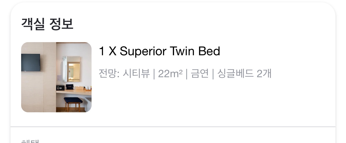 나의 일정은 3박5일 일정이지만 돌아가는 비행기편이 00:40분 비행기라 마지막날도 짐정리하고 편하게 쉬다가 씻고 가려고 1박 더 예약했다.