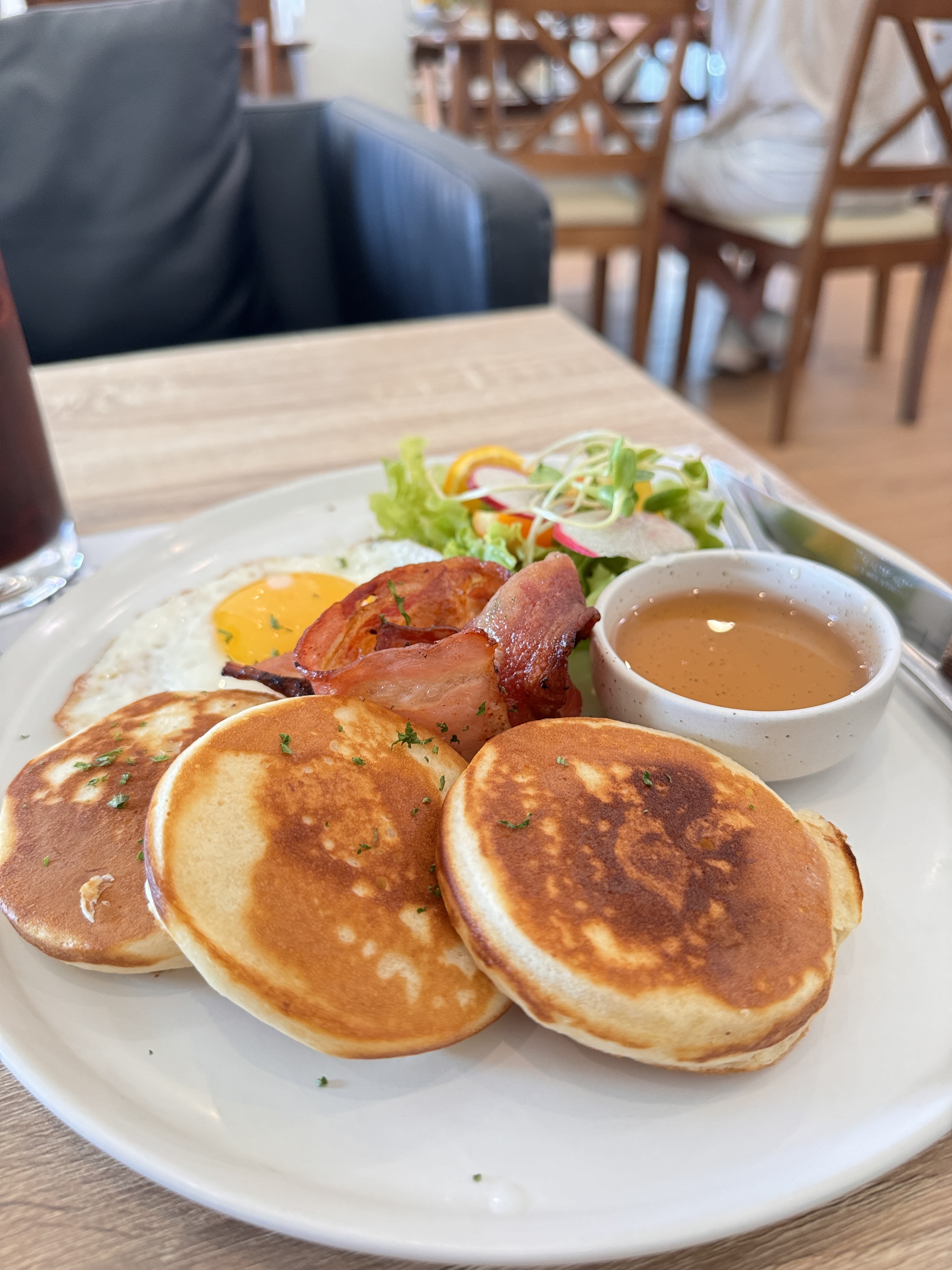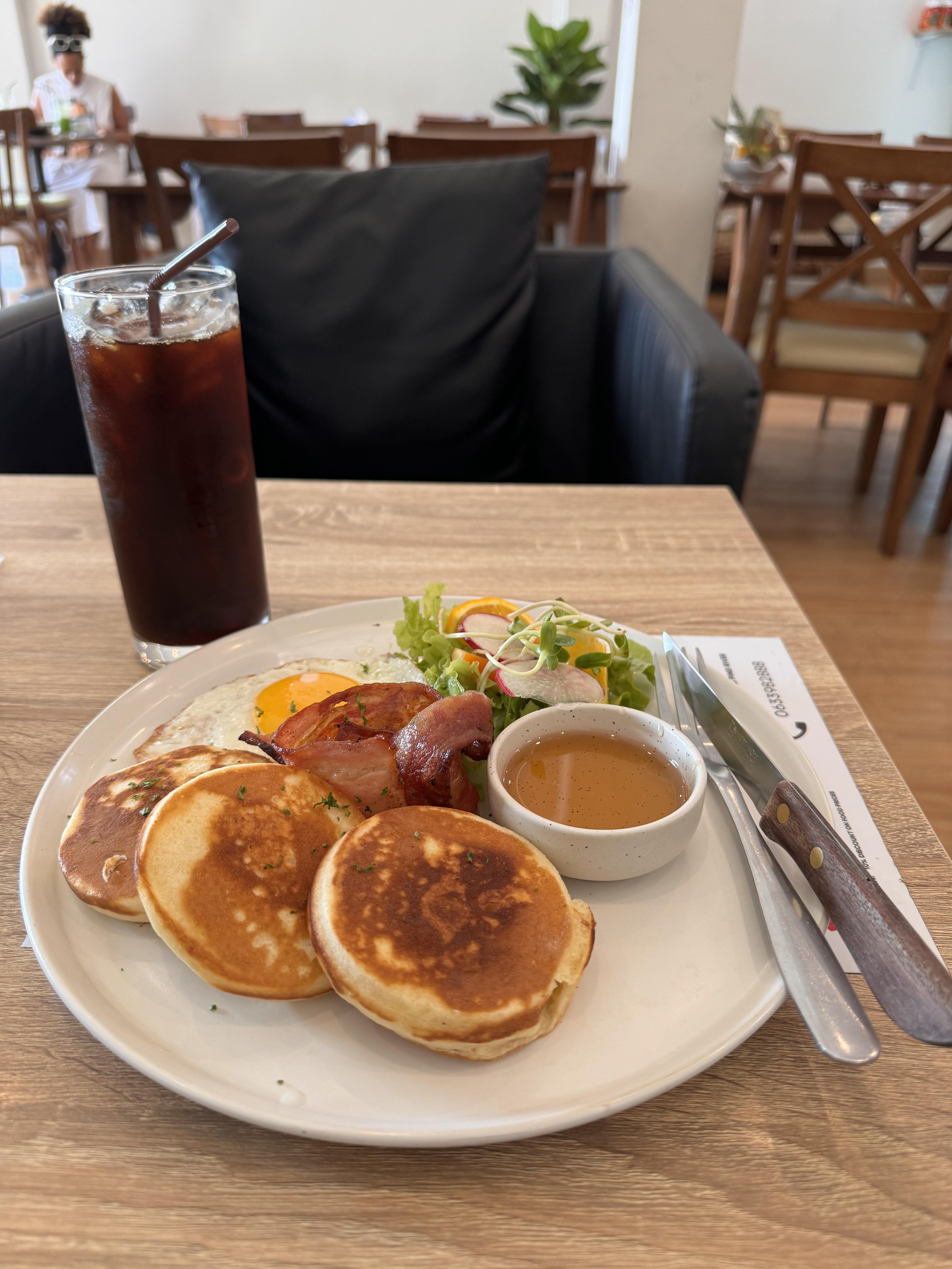Gravity Cafe’ & Bistro 카페에서 내가 주문한 팬케이크 세트와 아메리카노