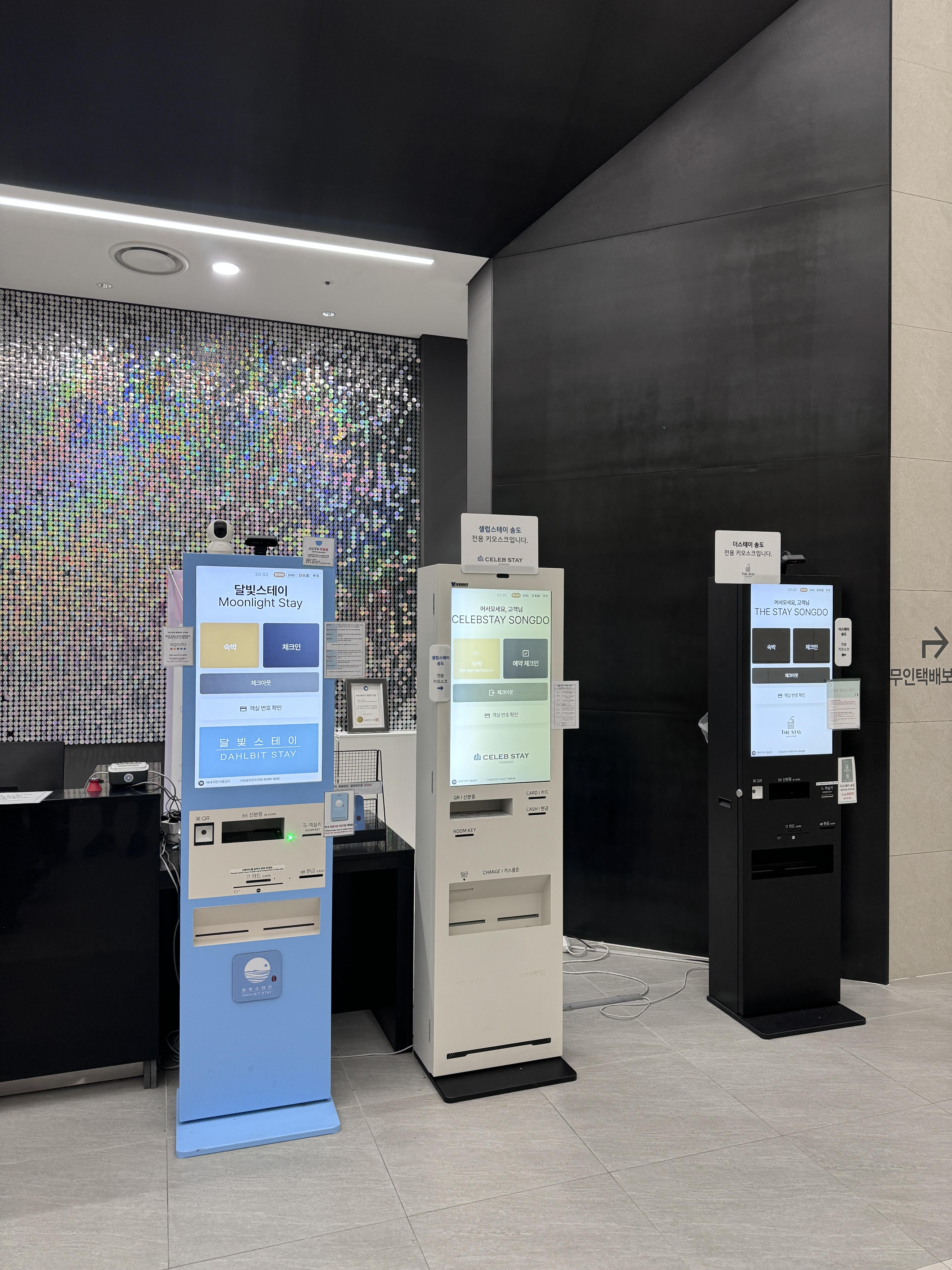 키오스크는 3대로 달빛스테이, 더스테이송도, 셀럽스테이 3개의 회사에서 운영하는 건가?