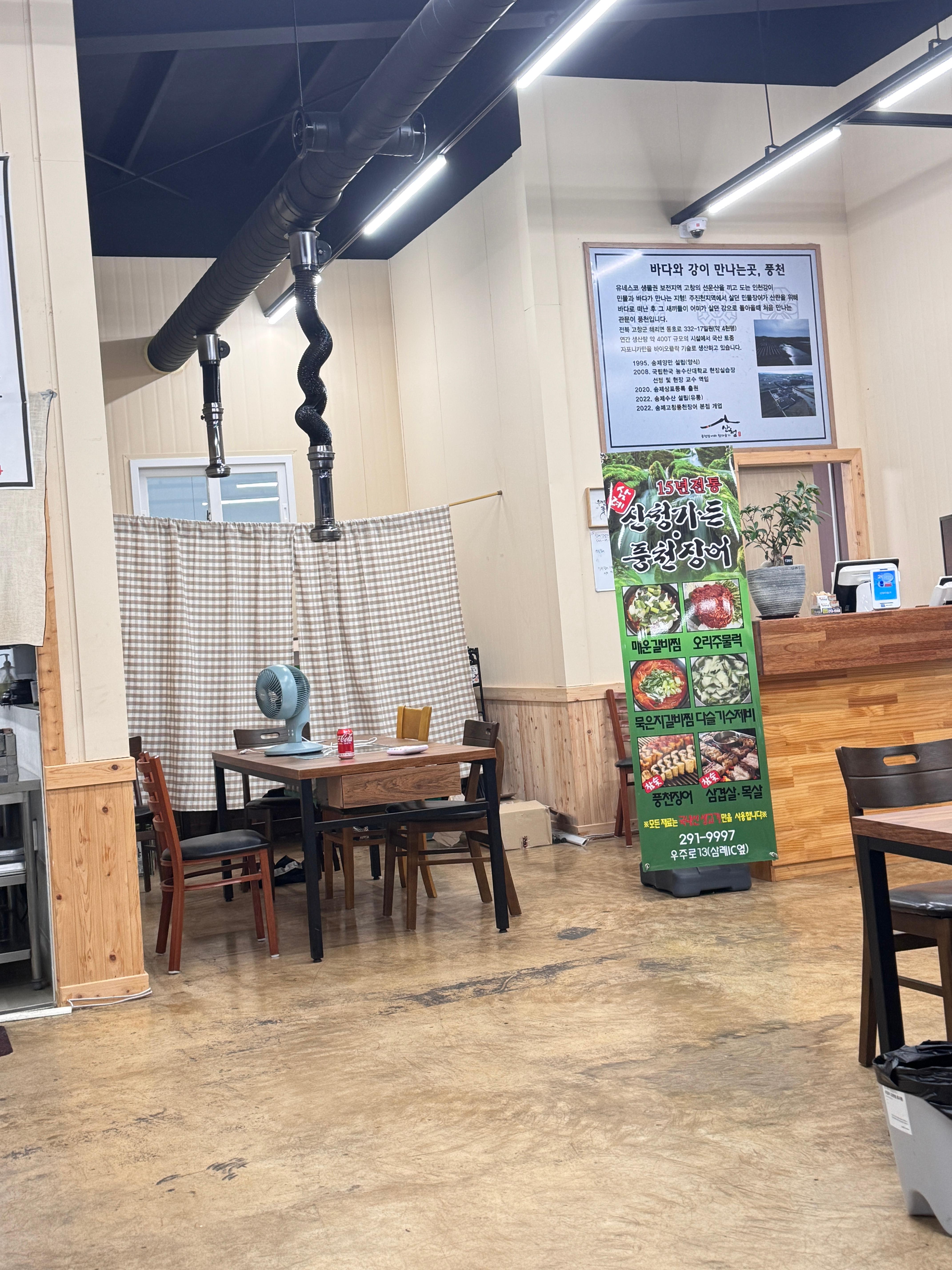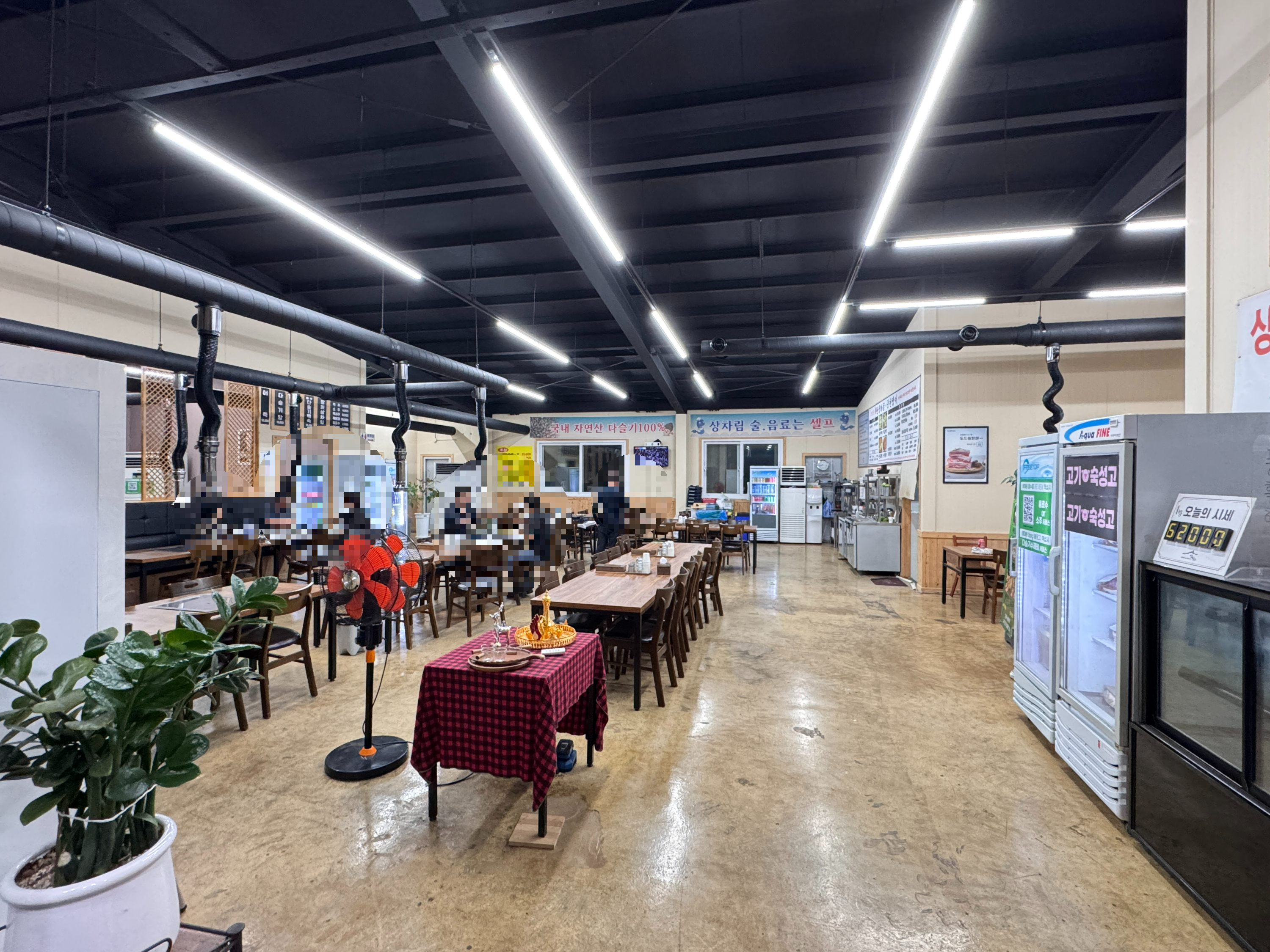 산청가든 가게 분위기 : 목재 인테리어와 정갈한 테이블 세팅이 인상적이었고, 가족 단위 손님부터 친구들과 함께 오신 분들까지 다양한 방문객들이 있었습니다.