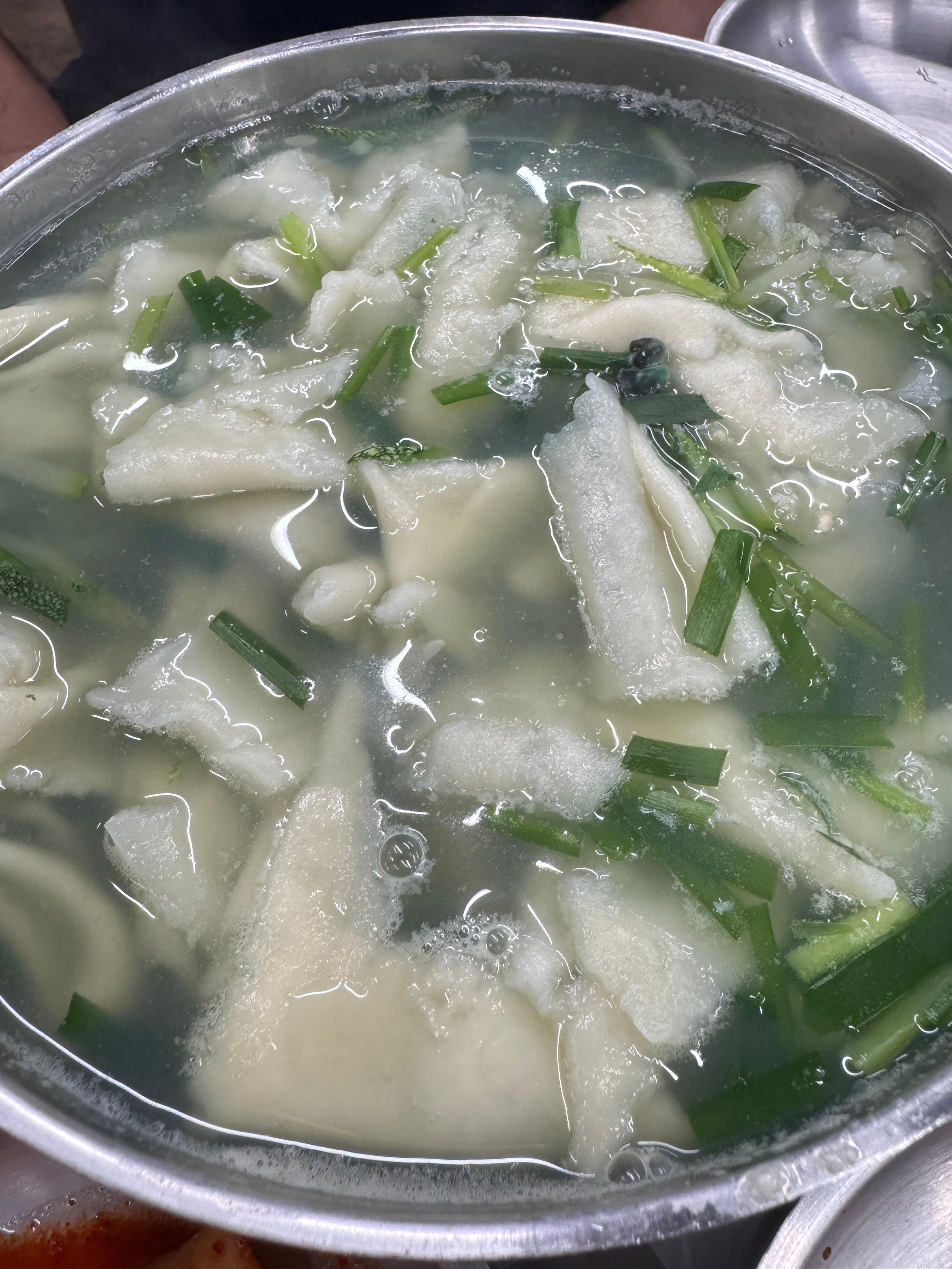 얇고 넓적하게 뜯어 넣은 수제비가 쫄깃하면서도 국물의 깊은 맛을 잘 머금어 떠먹을때마다 고소함이 베어나왔습니다.