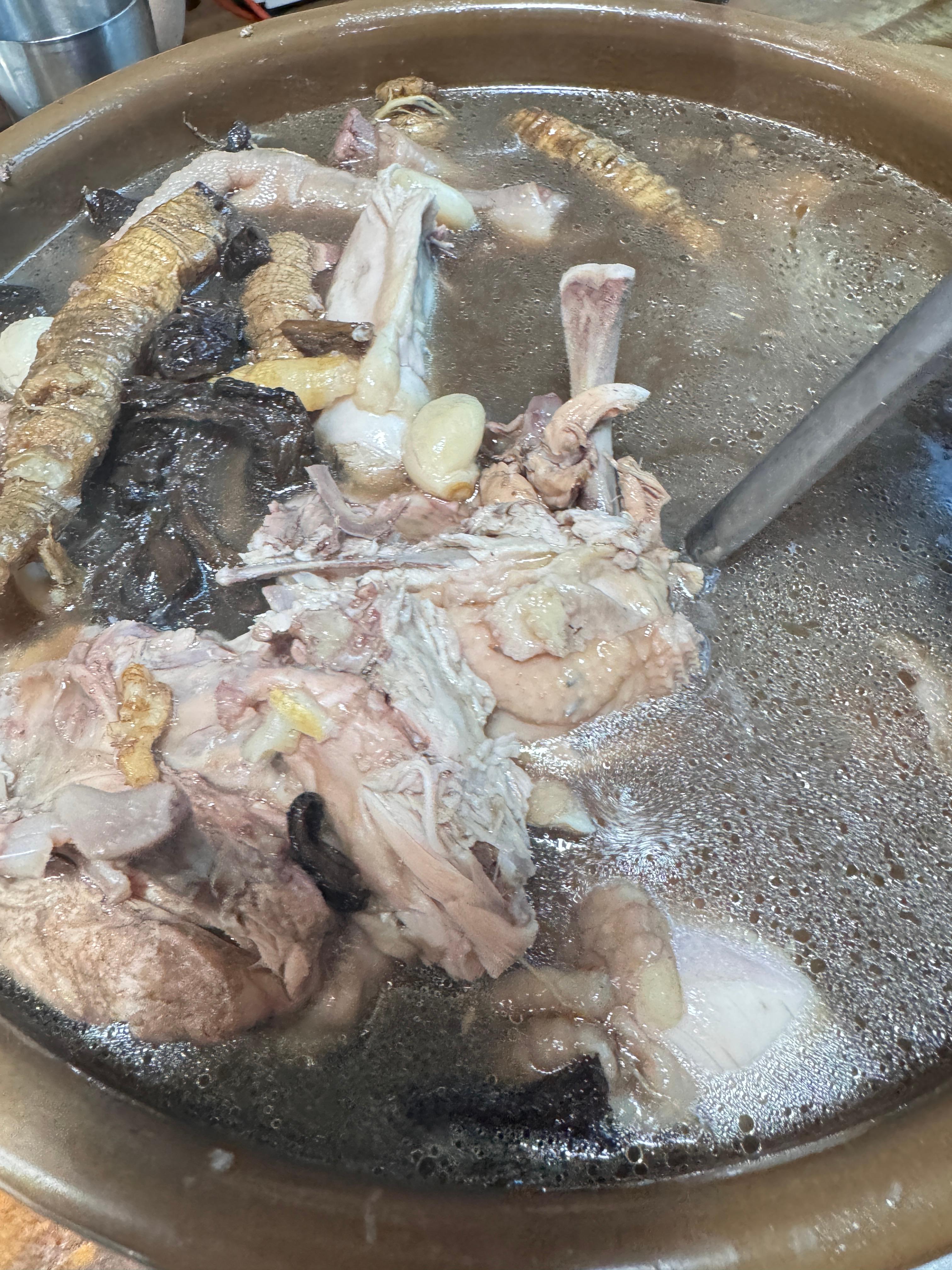 닭 크기가 매우크고, 능이버섯, 더덕, 인삼, 마늘 등이 들어가 정말 몸보신에 최고였습니다.