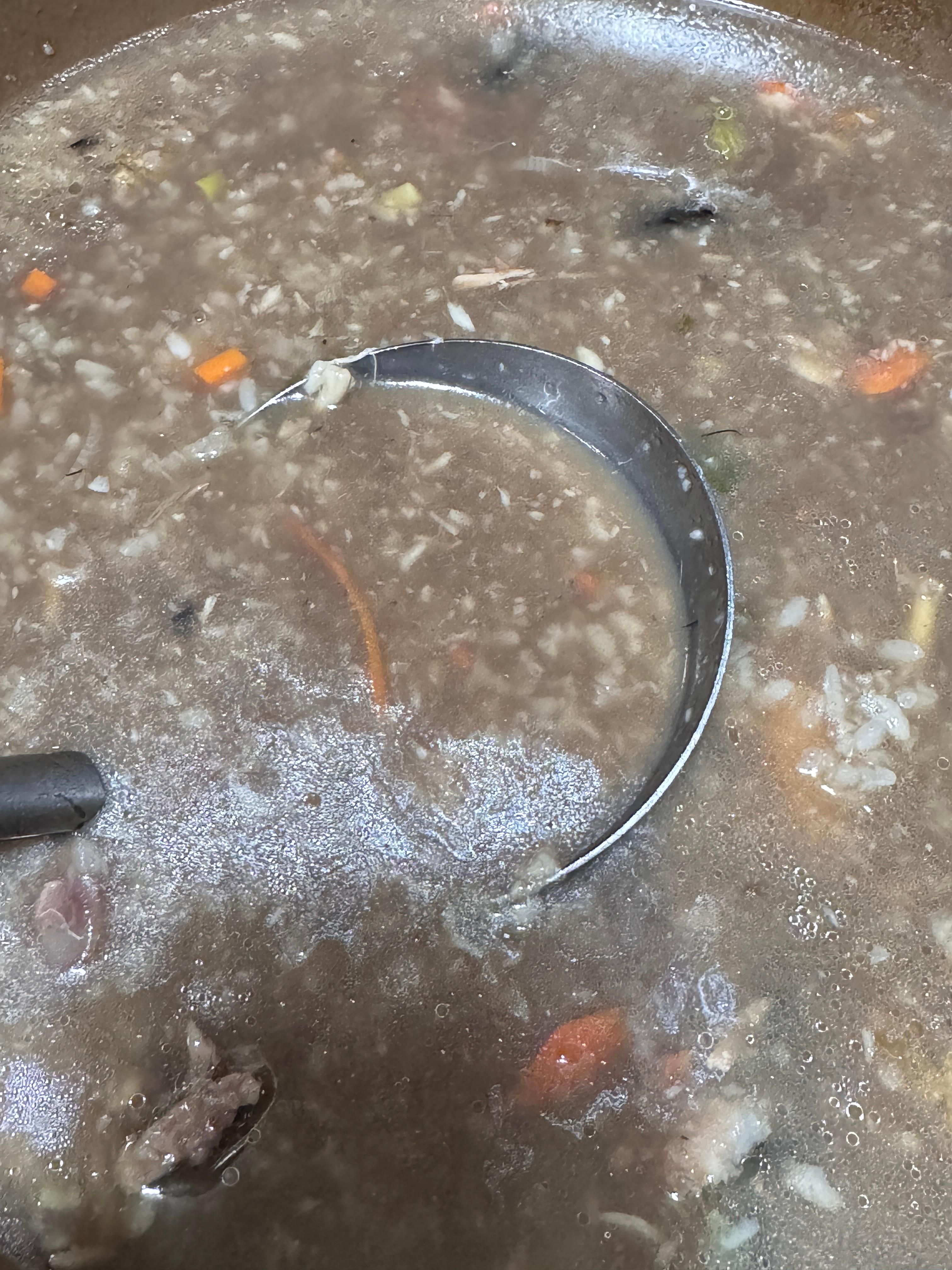 닭백숙을 다 먹고 직원에게 요청하면 찹쌀죽을 끓여 제공합니다.